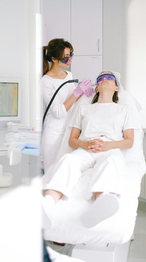 The specialist will gently cleanse your skin and begin the procedure, which may involve laser or IPL technology depending on your personalised treatment plan. You may feel a warm sensation or light tingling, which is normal and well-tolerated to you.